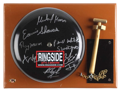 Offered here is a full-size authentic Ringside boxing bell. Hand-signed in silver paint pen by (7) including Earnie Shavers, Michael Moorer, Ray Mercer, Pernell Whitaker, Zab Judah and (2) others.